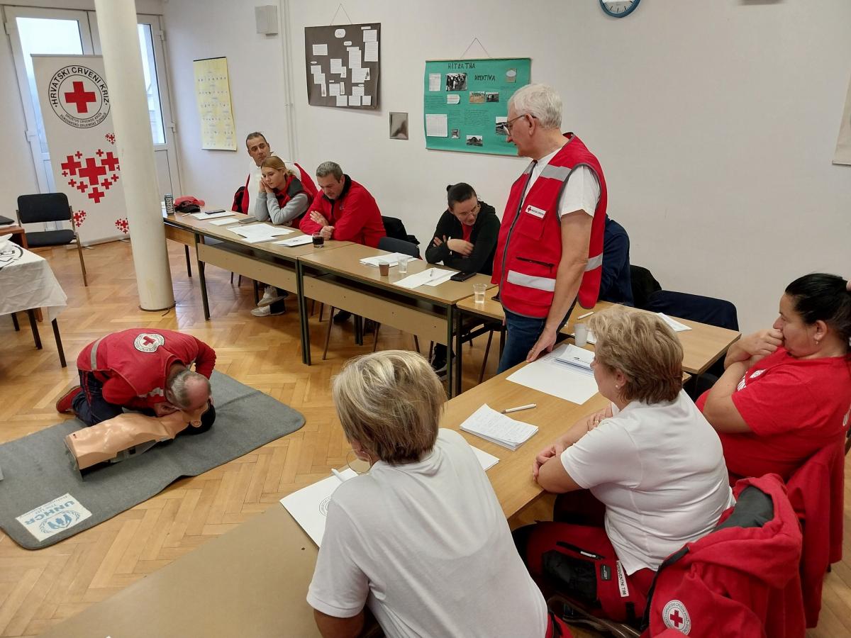 Unatoč hladnom i maglovitom vremenu, pripremni praktični dio edukacije - stavljanje u funkciju poljske kuhinje i podizanje logističkih šatora, sudionici su izvršili u rekordnom roku. Teme teoretskog dijela edukacije članova Županijskog interventnog tima obuhvatile su ulogu Hrvatskog Crvenog križa u kriznim situacijama, povijest Crvenog križa, Zakon o Hrvatskom križu, Zakon o sustavu civilne zaštite, Zakon o volonterstvu, sastav, edukaciju i opremu interventnog tima, krizno upravljanje, studije slučajeva katastrofalne poplave, migrantske krize, potresa i pandemije koronavirusa, te teoretski i praktični dio prve pomoći.